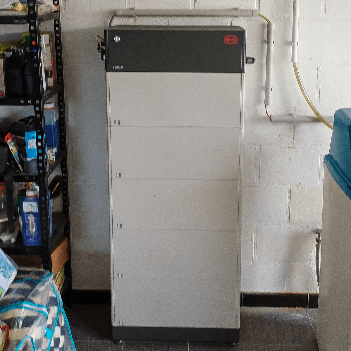Aan deze setup koppelden we een BYD HVM-thuisbatterij van 13,8 kWh. We kozen voor BYD omdat het merk bekendstaat om zijn betrouwbaarheid, lange levensduur en modulaire opbouw. De batterij bestaat uit uitbreidbare modules van 2,76 kWh.