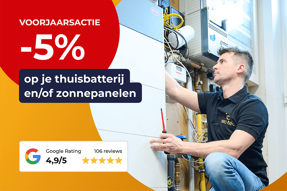 5% korting en 1 jaar GRATIS NRG-Zeker bij aankoop van een thuisbatterij